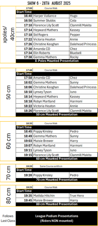 Show 6 Start Times